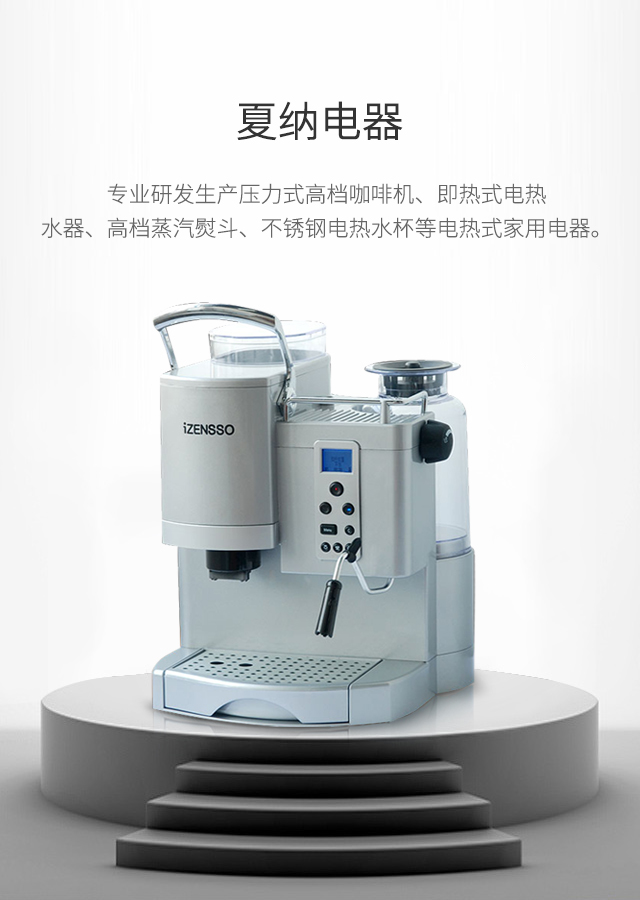 寧波夏納電器有限公司憑借母體寧波塞納電熱電器有限公司電熱元件專家的優(yōu)勢(shì),專業(yè)研發(fā)生產(chǎn)壓力式高檔咖啡機(jī)、即熱式電熱水器、高檔蒸汽熨斗、不銹鋼電熱水杯等電熱式家用電器...